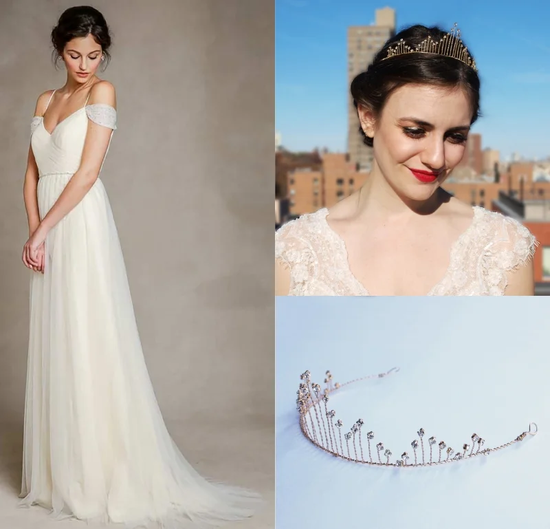 So romantic! This dreamy, feminine frock gets an art deco makeover with our Cecilia tiara. A super sweet, 1920s-inspired look for a bride that wants to look effortlessly glam on her wedding day.